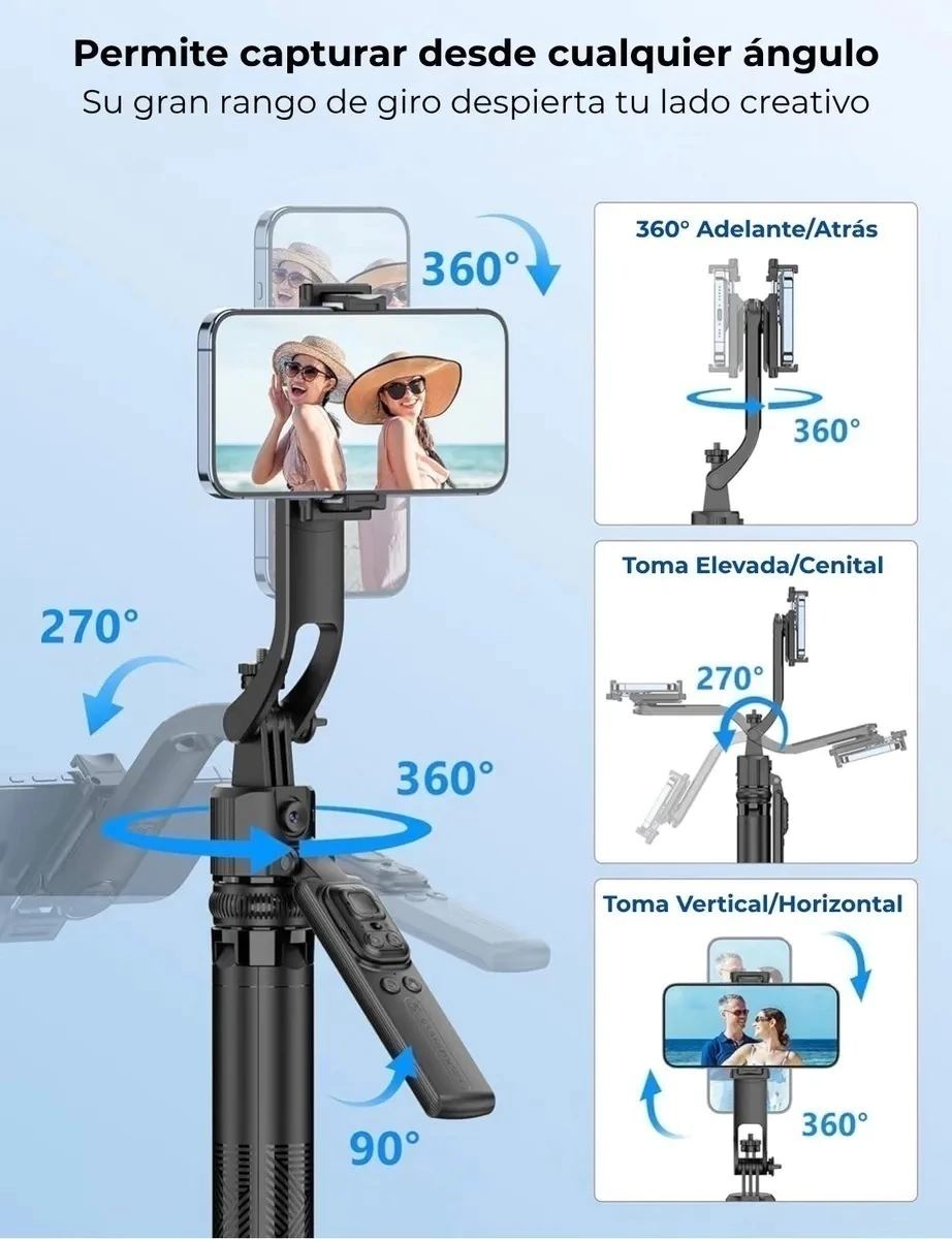 Con el Gimbal Selfie Stick Q185, llevá tu contenido profesional al siguiente nivel con tecnología inteligente y máxima versatilidad. ¡Ideal para creadores exigentes en Argentina y toda Latinoamérica!