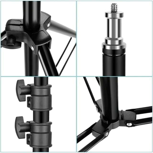 Este trípode cuenta con una altura regulable que va desde los 67 cm hasta 210 cm, adaptándose fácilmente a cualquier tipo de escenario o necesidad. Su estructura de aluminio liviano y durable, combinada con terminaciones en PVC, garantiza resistencia sin sacrificar portabilidad.
